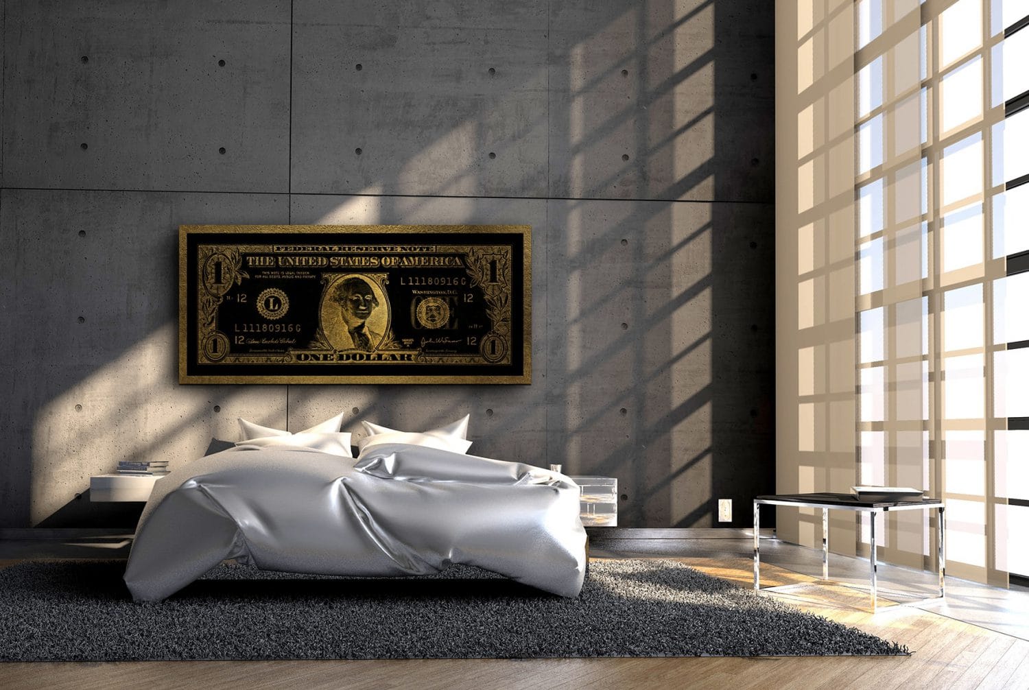Für ein elegantes Finish können Sie einen luxuriösen schwarzen Backrahmen wählen. Alle Kunstwerke werden mit einer Blindaufhängung geliefert, die für einen eleganten, schwebenden Effekt an der Wand sorgt.